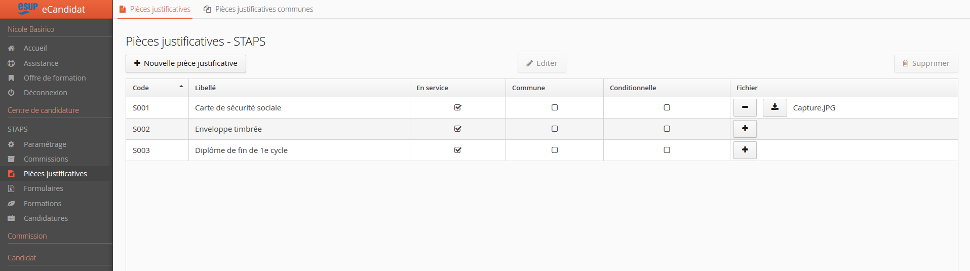 - Centre de candidature --> Pièces justificatives