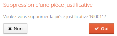 Sélectionner la pièce justificative à l'aide d'un clic sur le libellé, puis sur le bouton Supprimer