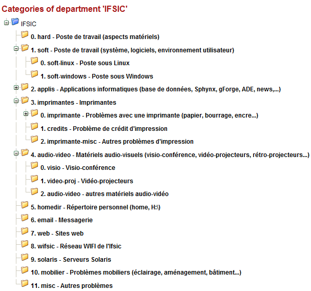 esup-helpdesk was originally designed for universities, i.e. tens of thousands users and tickets. After the division of the establishment into departments, categories are the second-level used to sort tickets.