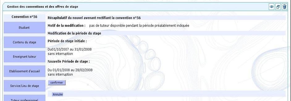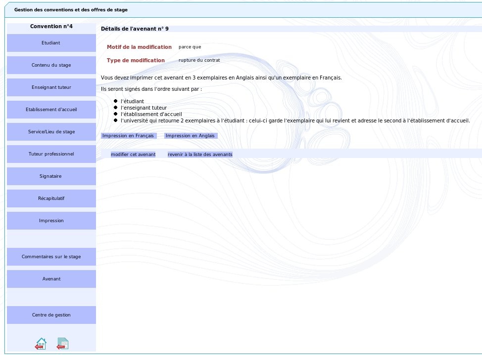 Gestion des avenants à une convention de stage