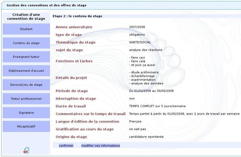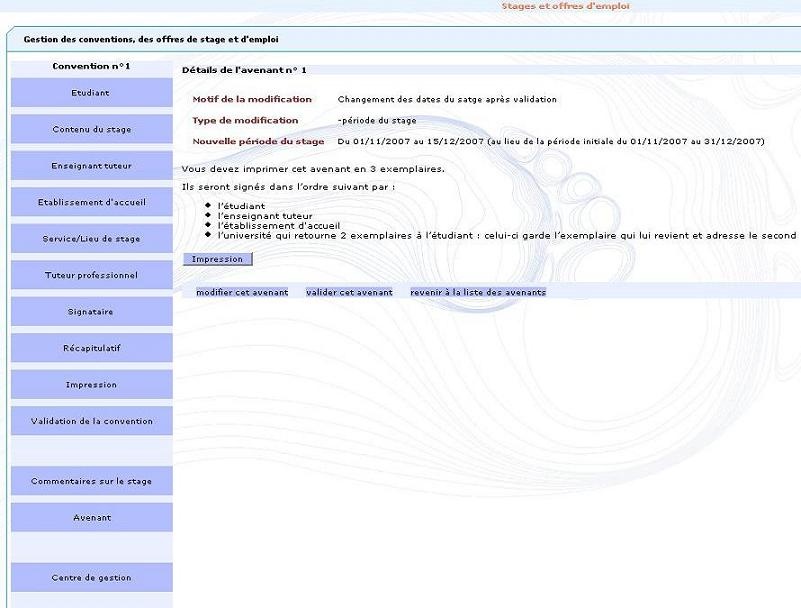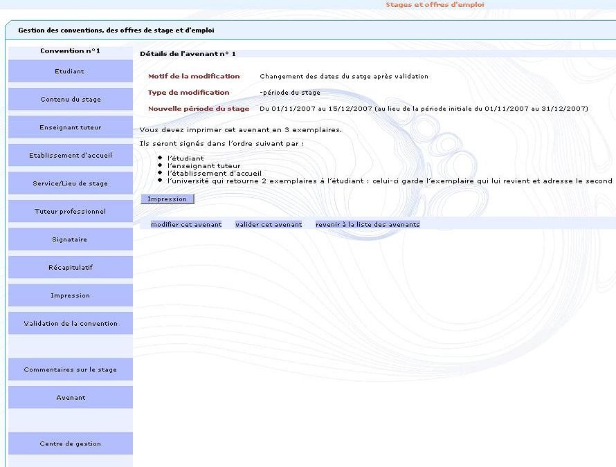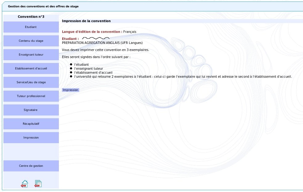 Il s'agit des conventions de stage gérées par le centre de gestion auquel vous êtes rattaché et qui ont été saisies soit par les étudiants, soit par un personnel de ce centre disposant des droits pour le faire.