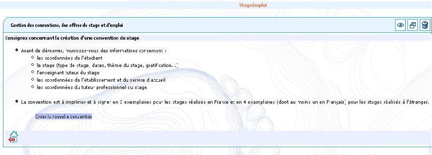 Cliquez sur "Rechercher une convention de stage" dans le menu de la page d'accueil pour afficher la fenêtre ci dessous