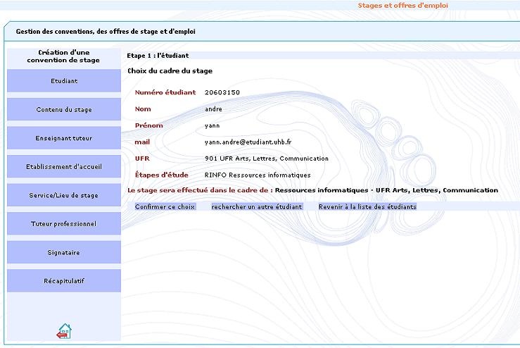Deux types de critères sont possibles : UFR ou ETAPE d'enseignement (une année d'un diplôme), ces deux critères figurent dans la convention de stage de l'étudiant