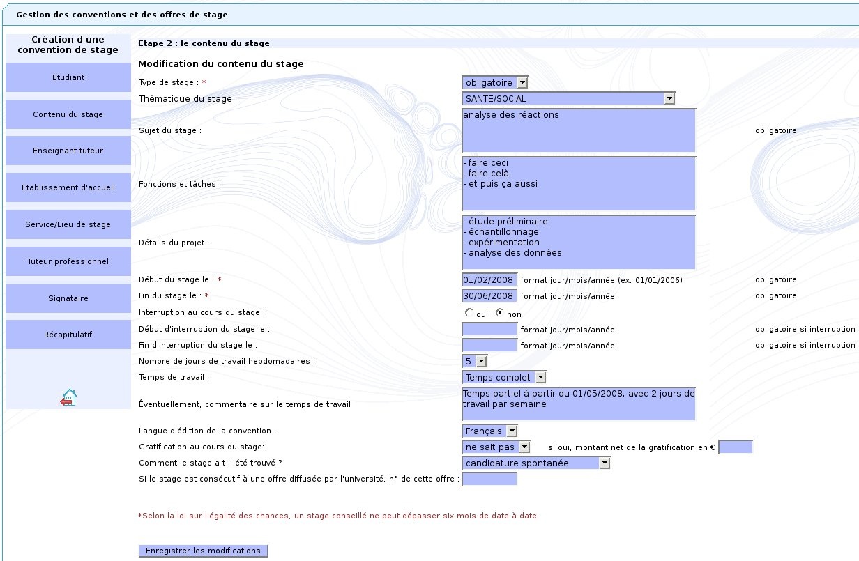 Utilisation de l'application de gestion des stages et des offres d'emploi