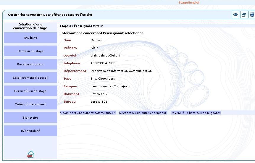 - enseignant tuteur de stage : il a les possibilités d'un personnel , il peut en outre visualiser les conventions de stages pour lesquels il est tuteur