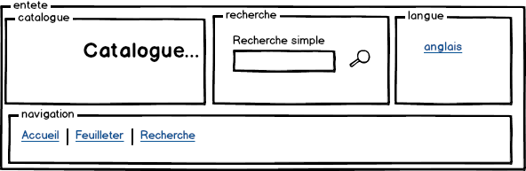 La div entete est constituée de 3 éléments flottants (catalogue, recherche et langue) suivis par un élément navigation qui permettra d'accéder aux pages d'uniform (accueil, recherche, liste)