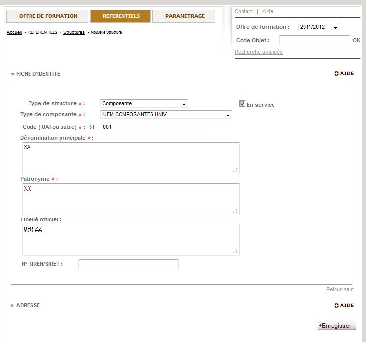 Pour ROF, il convient de renseigner les champs dans le référentiel de l'outil :