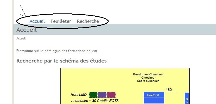 - rechercheAvancee.cdmfr.xsl propose la grille de recherche, les critères actuels étant le domaine, le type de diplôme et/ou des mots-clés