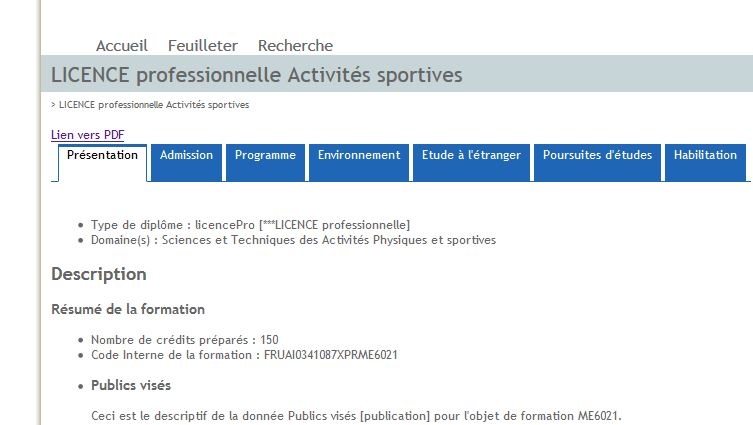 - Page de présentation d'une formation