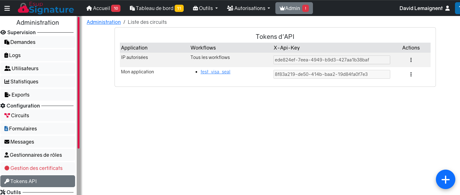 Ici on a deux type de token : "Tous les workflows" et un pour un circuit en particulier.