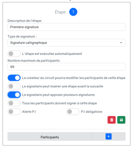 En général, c'est à l'appel du web service que l'on va configurer les signataires, il faudra donc créer autant d'étapes que l'on souhaite en laissant la liste des participants vide (sauf dans le cas ou une des étapes possède un signataire fixe).