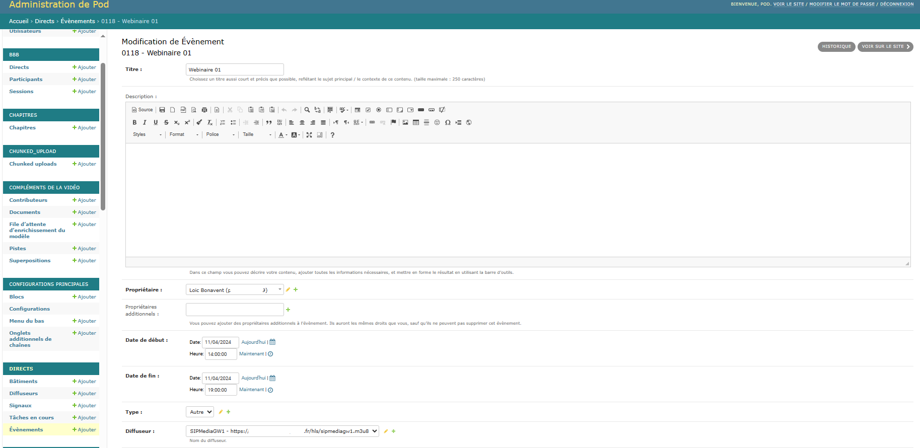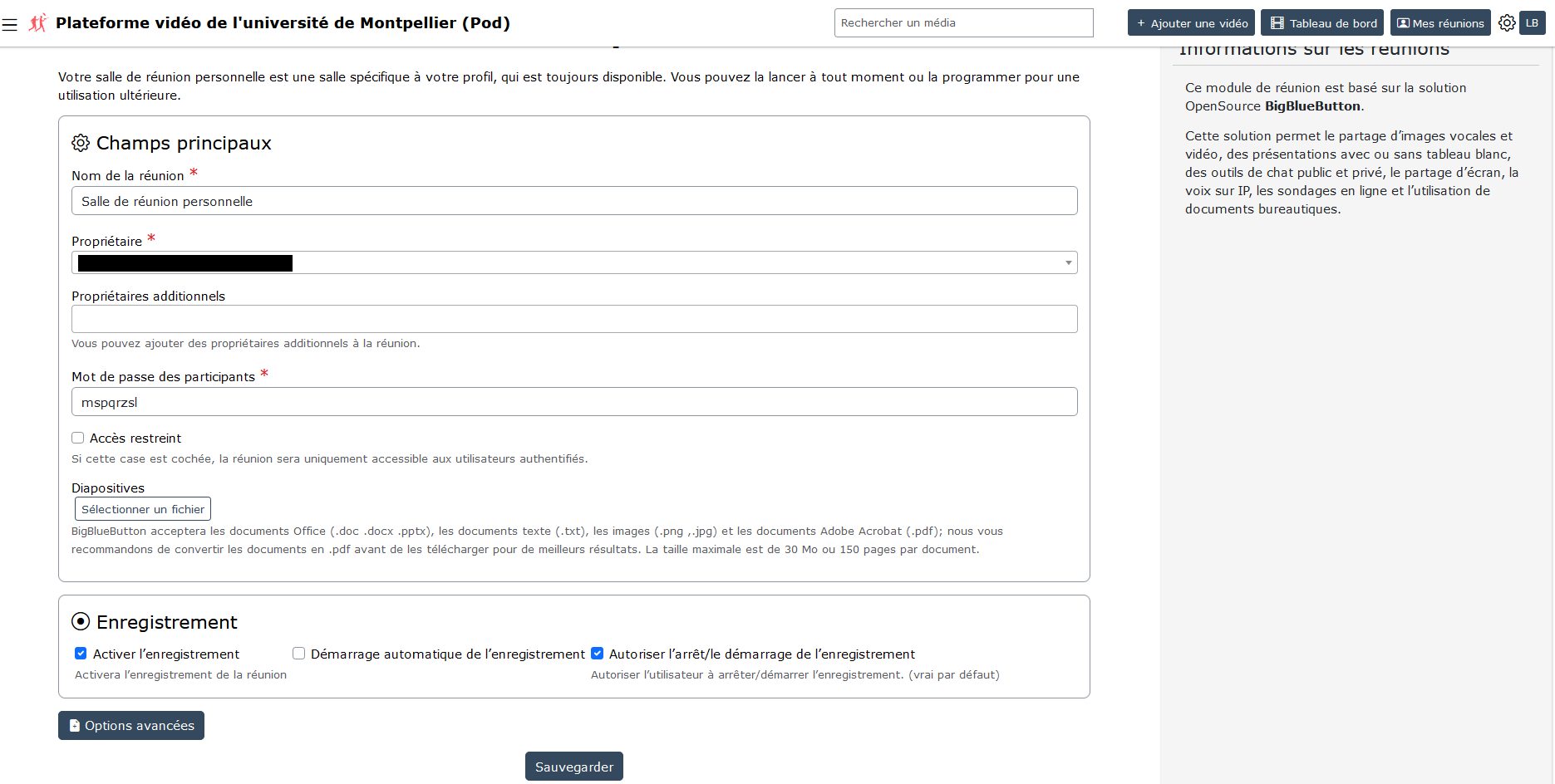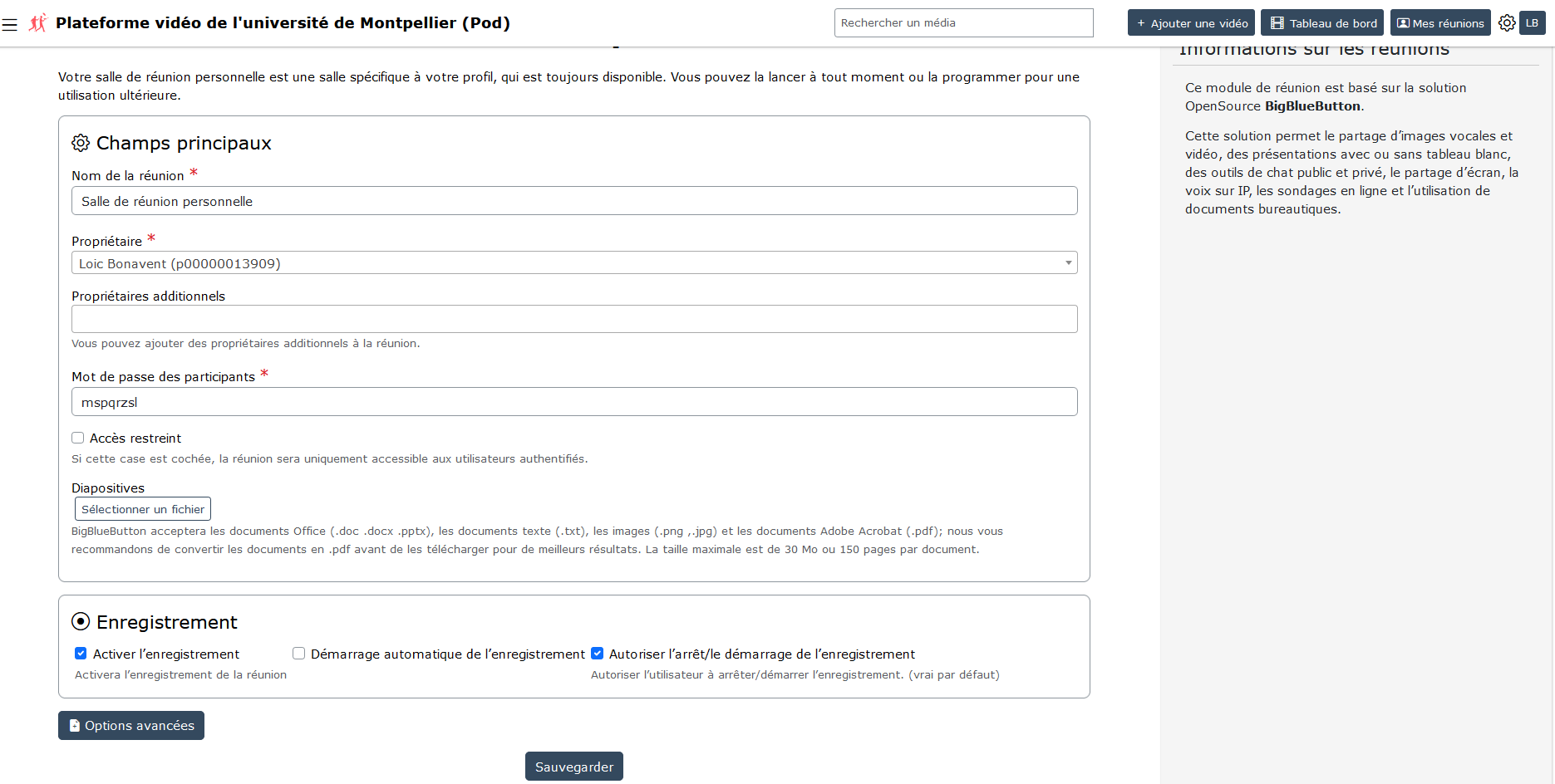 Page: Mise en place du mode webinaire pour les sessions BigBlueButton pour Pod v3